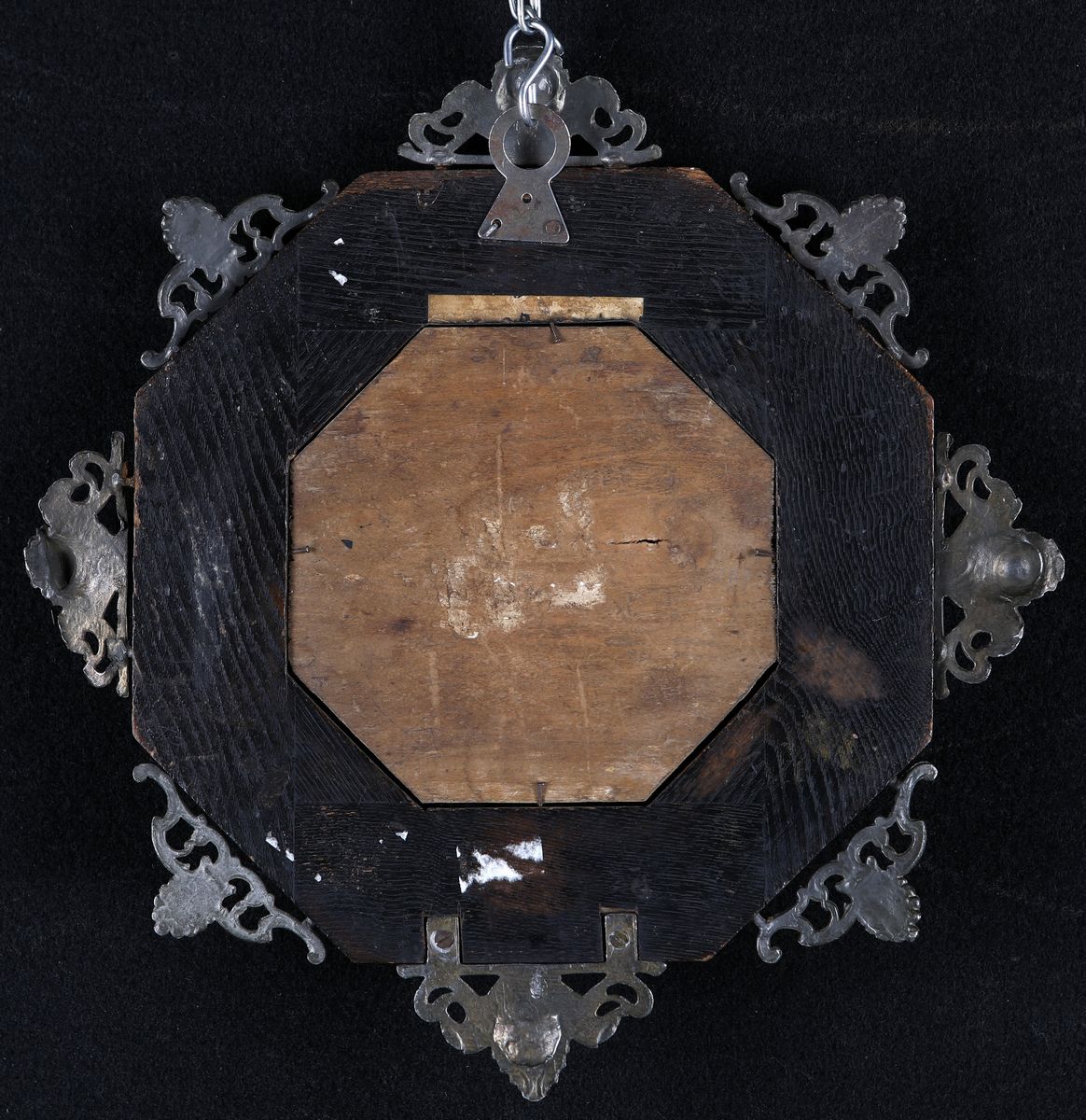 con cornici ottagonali e finiture ornamentali in metallo argentato, impreziosite lungo la fascia da placchette in marmi e pietre dure inserite entro nicchie circondate da volute vegetali alla maniera rinascimentale