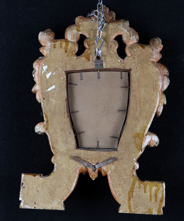 Coppia di piccole cartegloria in legno dorato con specchi, XIX secolo
