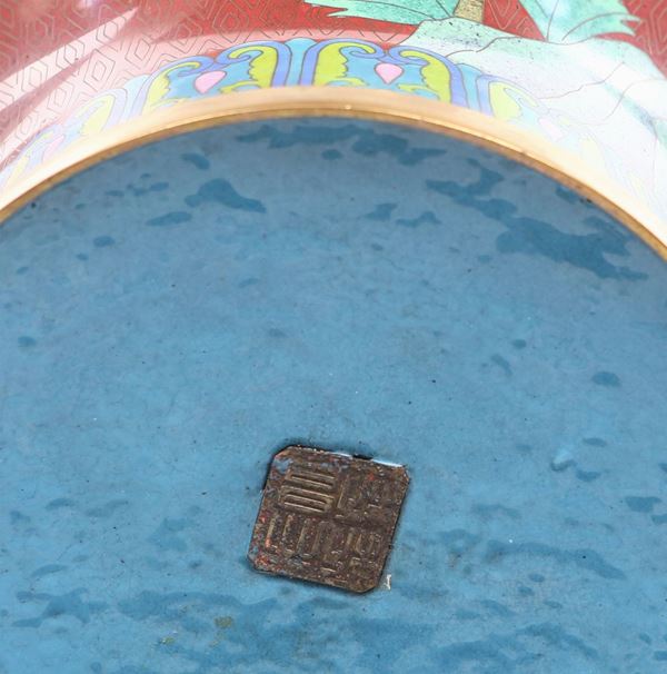 Coppia di potiche in metallo smaltato, arte cinese, seconda metà del XIX secolo