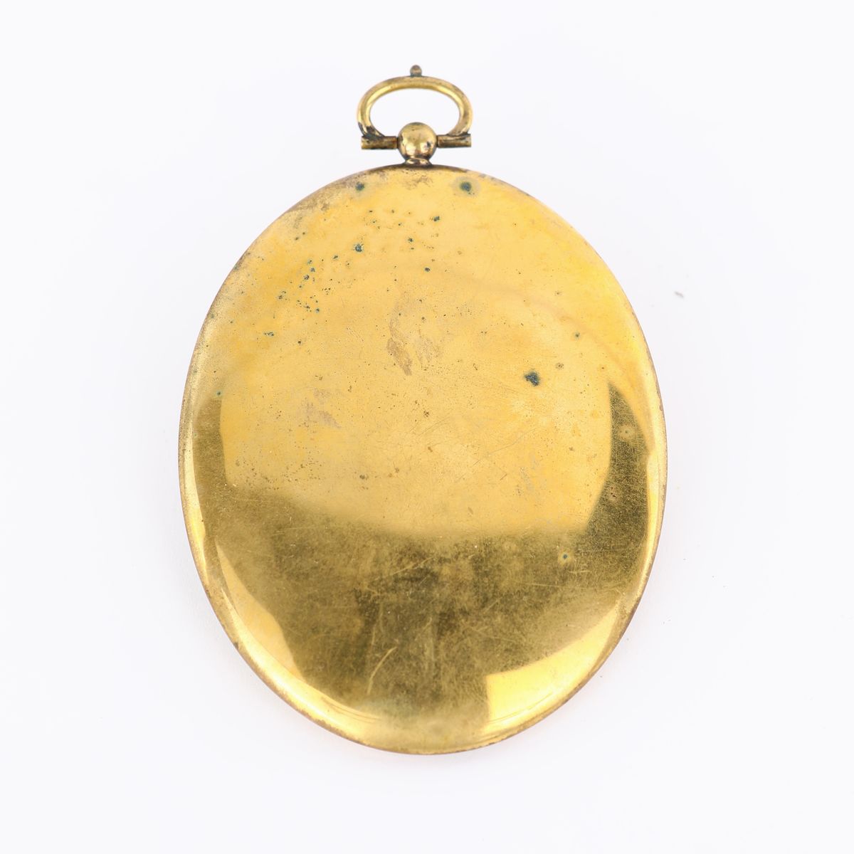 miniatura a sesto ovale entro medaglione in metallo dorato inserito in astuccio di cuoio