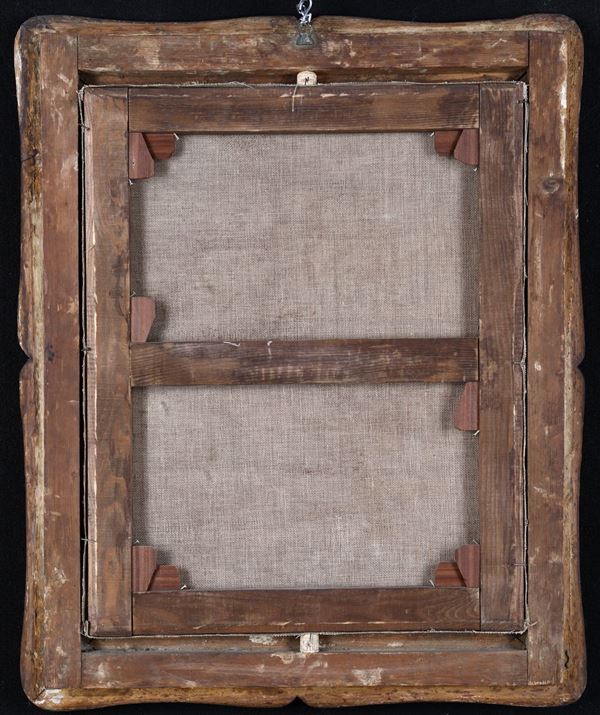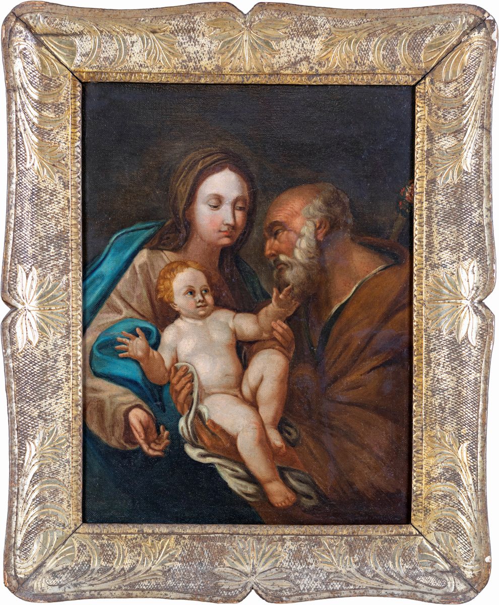 La tela, con la consueta iconografia della Sacra Famiglia, suggerisce nella morbidezza della pittura e nella dolcezza degli atteggiamenti la mano di un pittore attivo in Emilia.