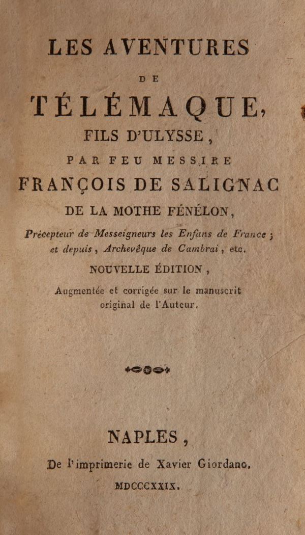 François de Salignac de La Mothe-Fenelon. Les Aventures de Telemaque, fils d'Ulysse, Xavier Giordano, Napoli 1829