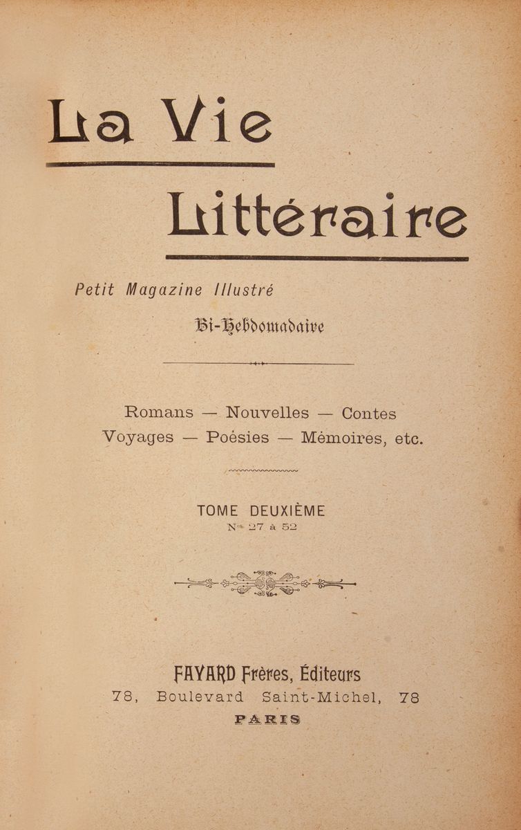 La Vie Litteraire, Petit Magazine illustré Bi-hebdomadaire, Fayard Freres, Parigi, fine XIX-inizi XX sec