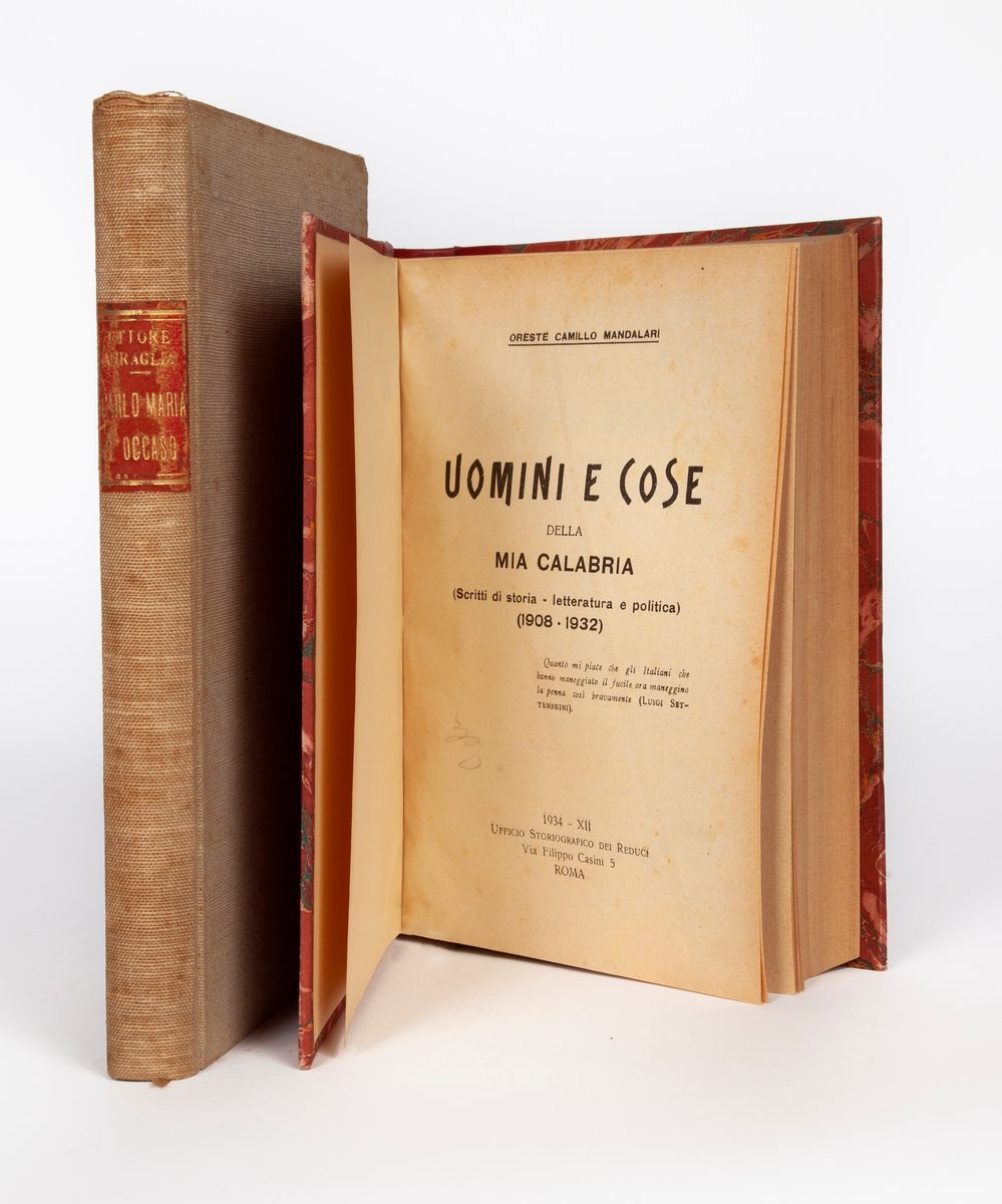 1- Oreste Camillo Mandalari, Uomini e cose della mia Calabria; Roma 1934 - legatura moderna in mezza pelle con fregi e titolo in oro al dorso
