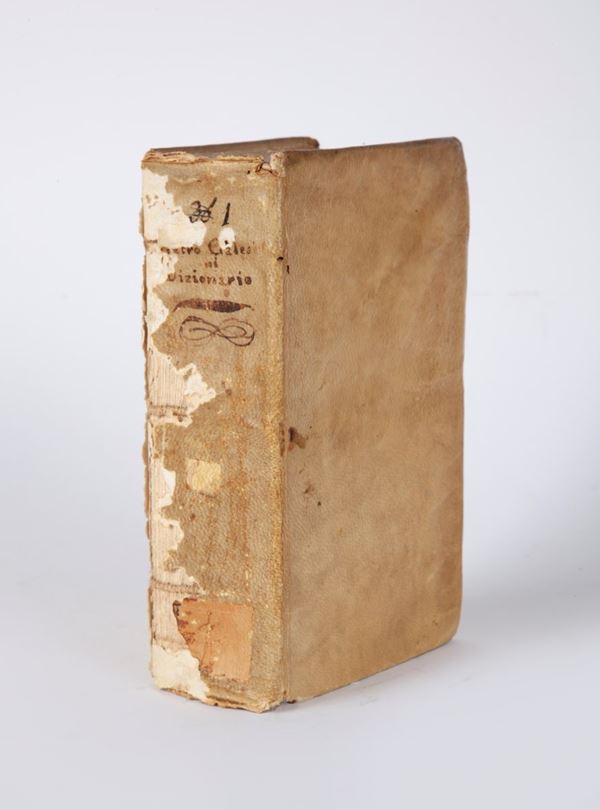 In 16°. Legatura in piena pergamena con titolo manoscritto al dorso. Difetti e mancanze alla pergamena.