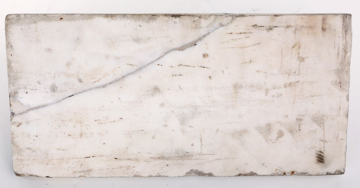con figura virile ritratta di profilo con corpo parzialmente avvolto da un peplo ; profilo modanato. Rotture