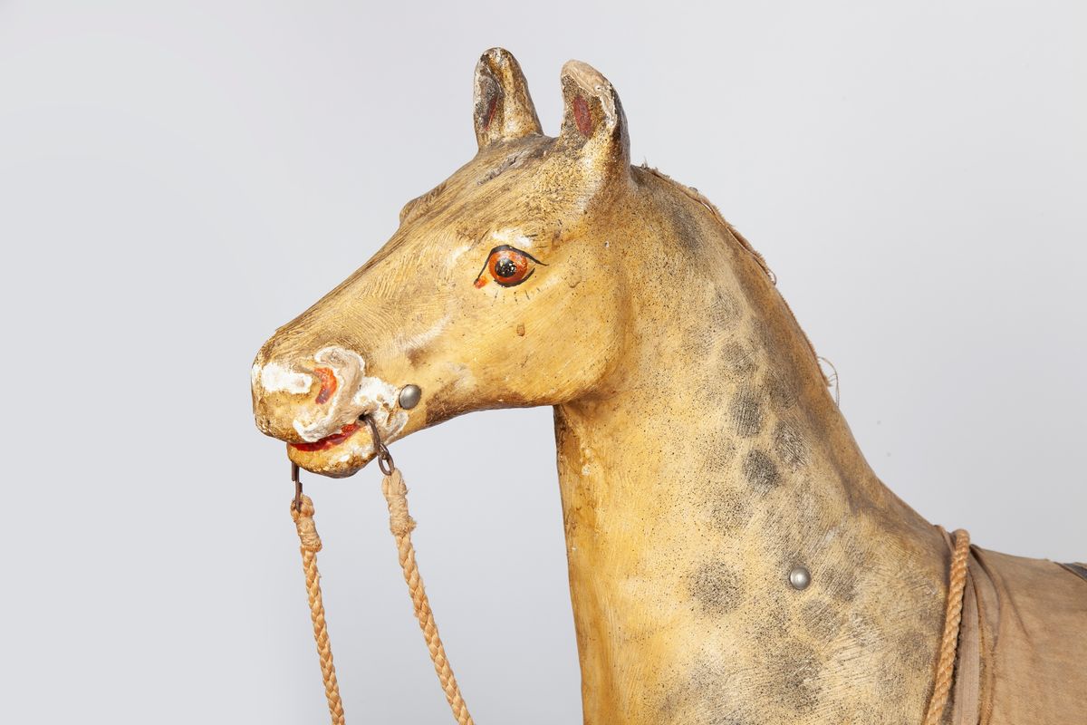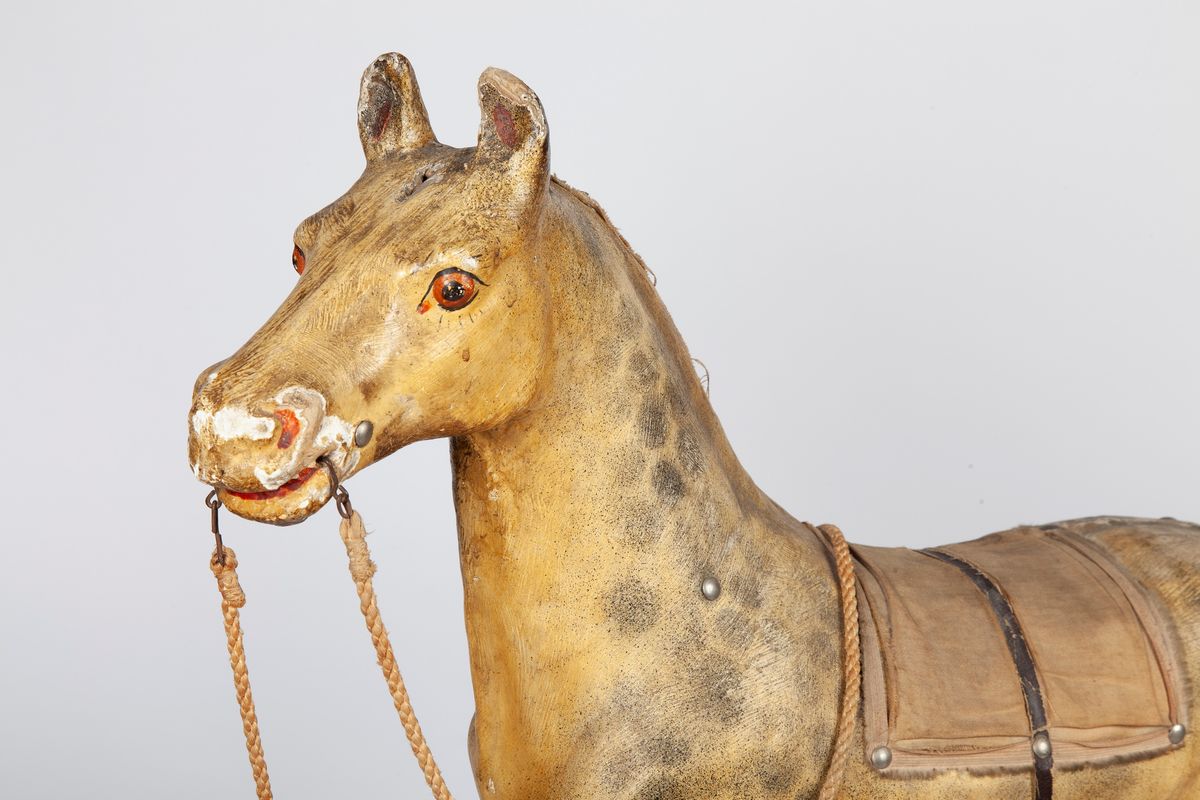 Cavallo giocattolo in cartapesta e legno laccati, fine del XIX/inizi XX secolo