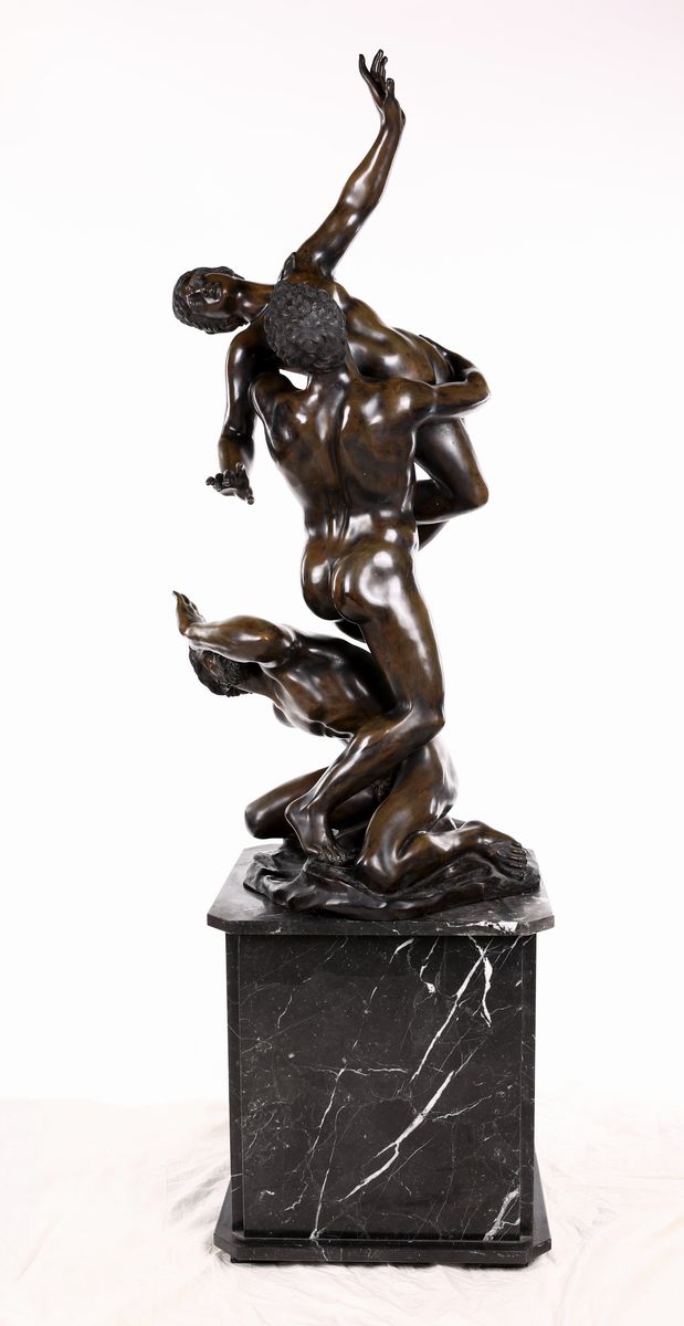 Grande gruppo scultoreo in bronzo patinato raffigurante il ratto delle Sabine, XIX secolo