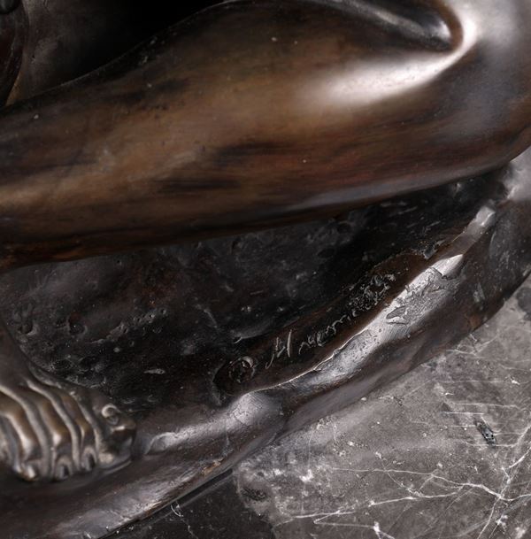 replica dall'originale marmoreo dello scultore fiammingo Giambologna, esposto nella Loggia dei Lanzi a piazza della Signora a Firenze. Firma non decifrabile sulla base; piedistallo squadrato in marmo