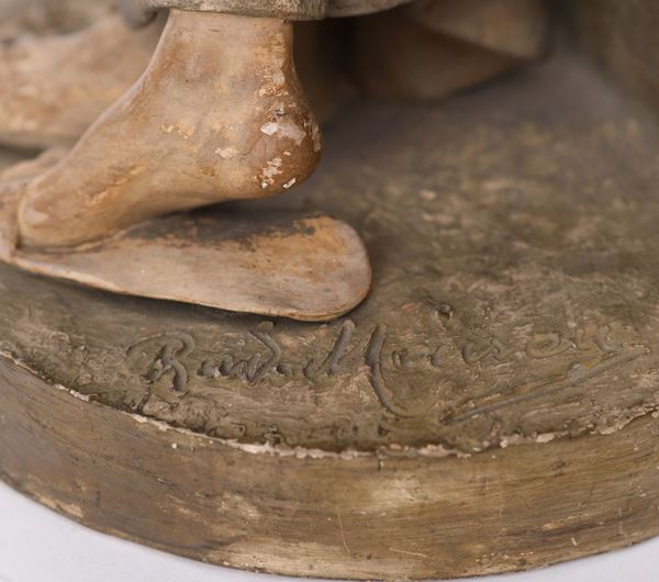 ritratto stante e idealmente appoggiato ad una stele con iscrizione latina. Firma in pasta sulla base: Rudolf Maison; incusso al verso: PP reprodution reservée 1888/10/65. In alto a destra iscrizione non interamente decifrabile