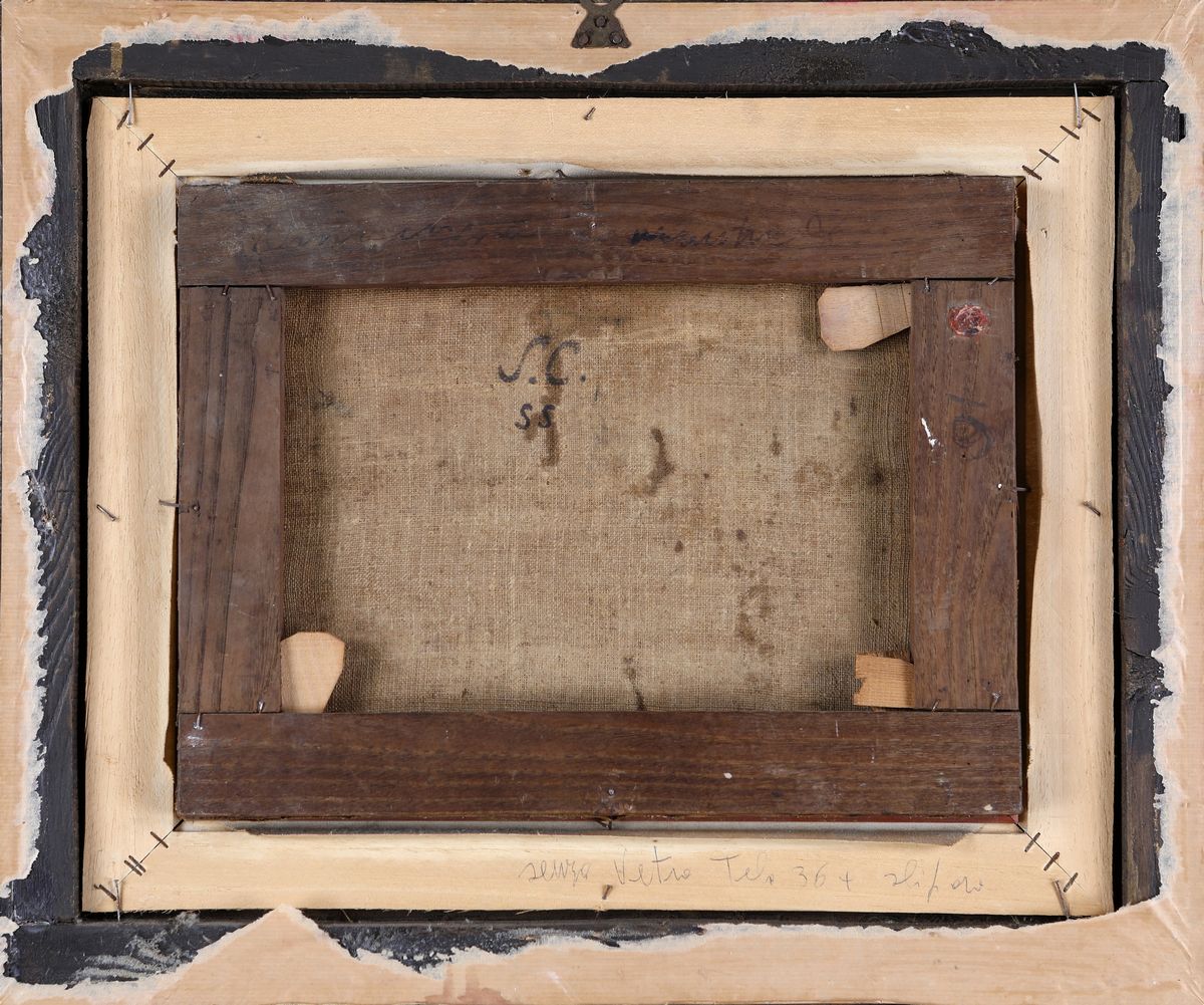 Al verso, iscrizione manoscritta sul telaio e bollo di ceralacca; monogramma sulla tela