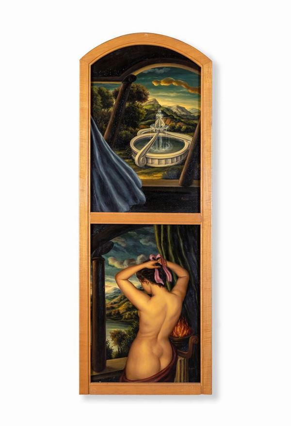 Opera composta da tre tavole, ognuna firmata in basso a destra, concepita per formare un paravento