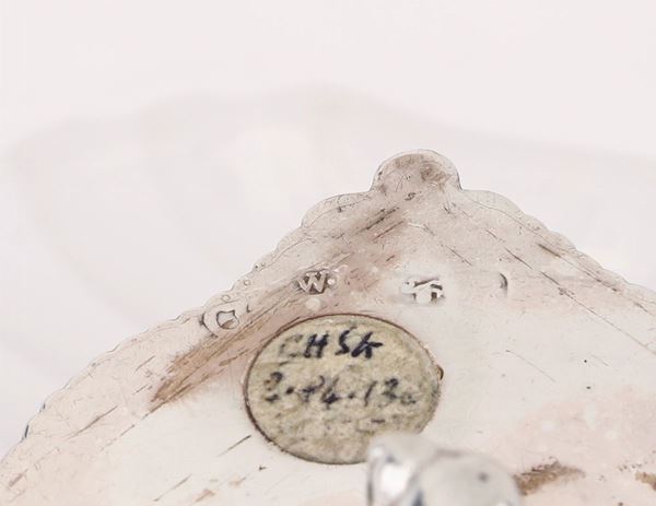 a forma di conchiglia con tre piedini a chiocciola e vaschetta in vetro satinato