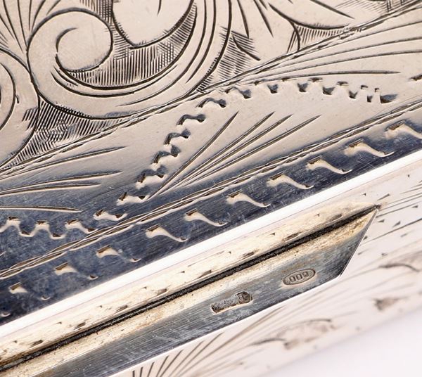 interamente decorata a motivi naturalistici incisi; coperchio incernierato