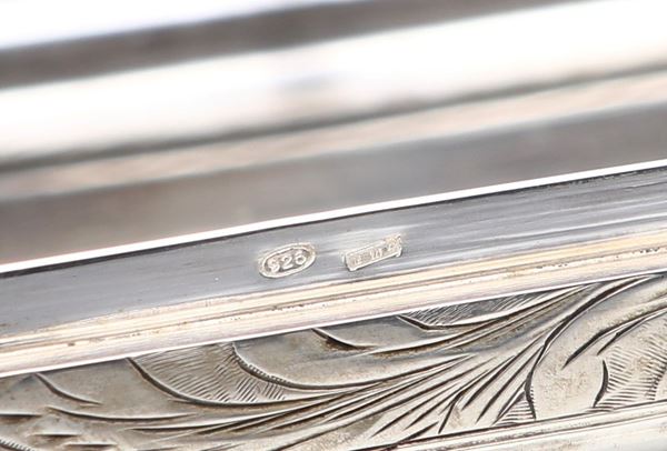 di forma rettangolare con coperchio incernierato ed angoli arrotondati, fitta decorazione a volute incise sull'intera superficie
