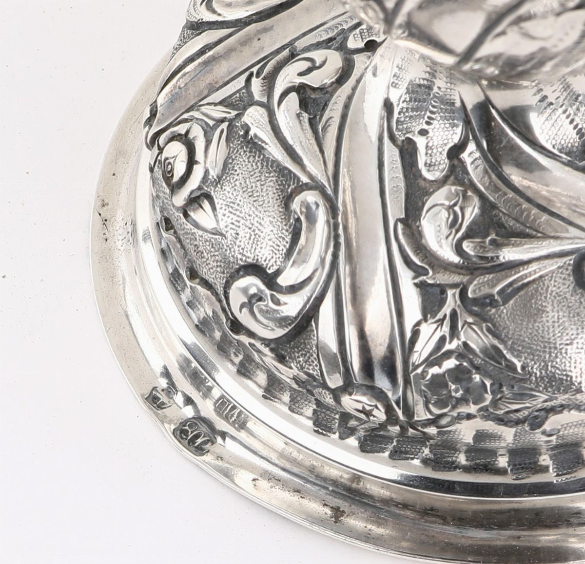 con corpo decorato da composizioni fiorite disposte ad andamento elicoidale alternate a bande lisce; orlo superiore ondulato, piede circolare