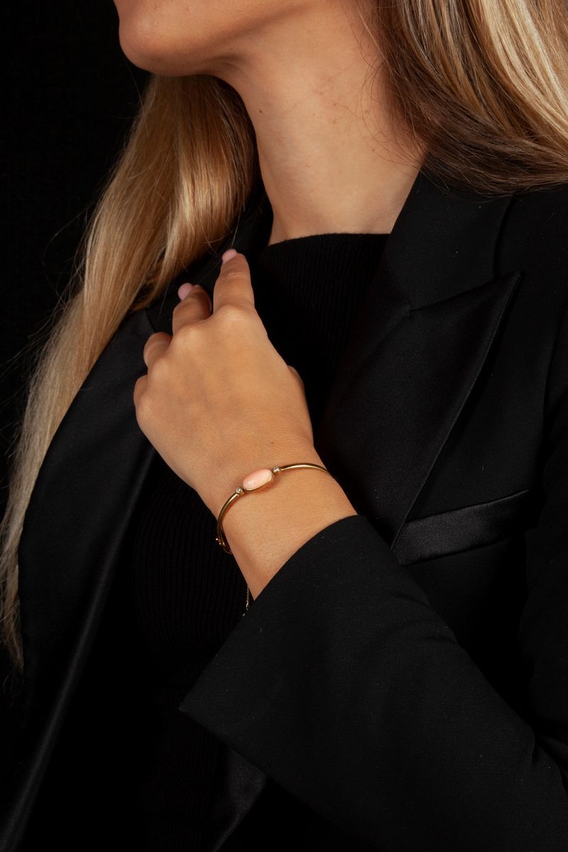 Oro giallo 750/000. Spola di corallo rosa, due diamanti taglio brillante ct. 0,10 circa. Peso complessivo gr. 11,10.