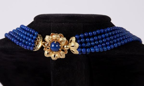 Demiparure di collana e orecchini in lapislazzuli e oro