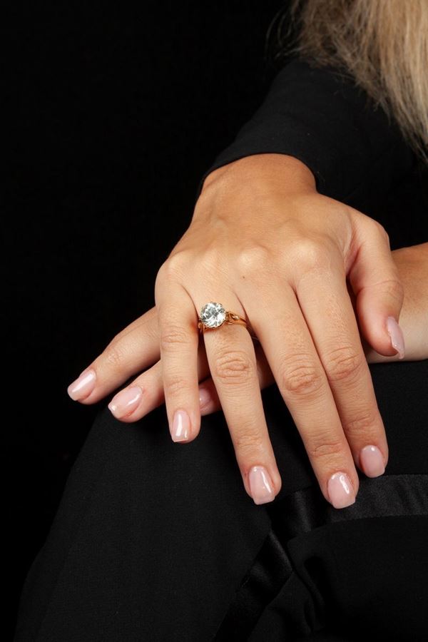 Anello in oro con diamante solitario taglio vecchia Europa