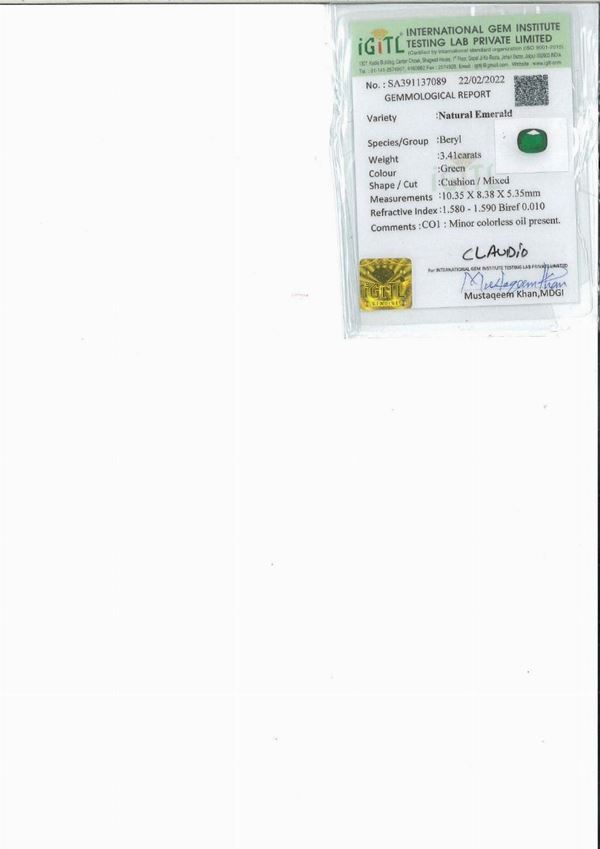 Certificato gemmologico N. SA391137089