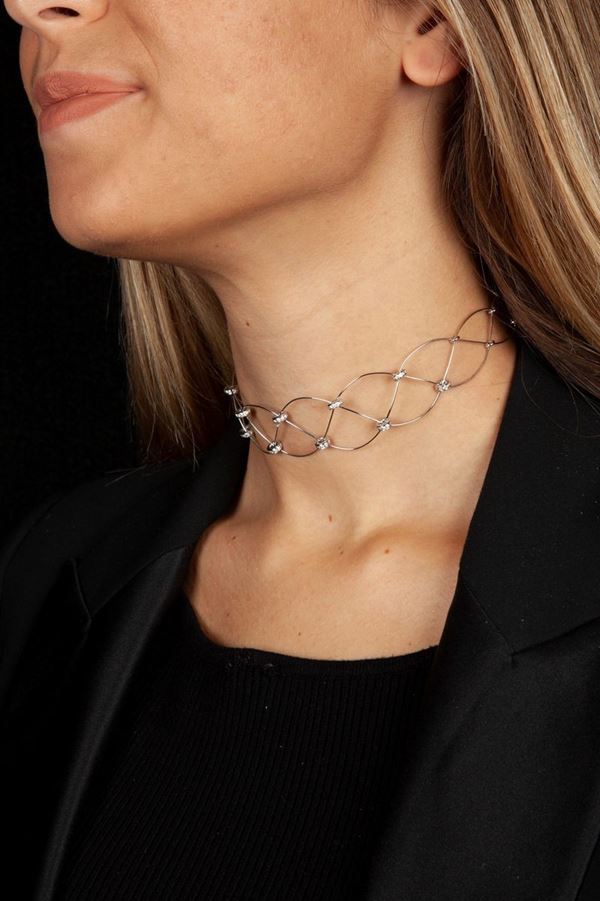 Oro bianco 750/000. Brillanti ct. 0,40 circa. Peso complessivo gr. 13,60.