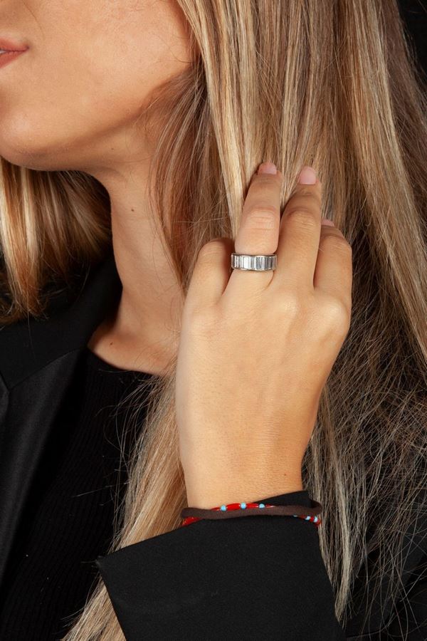 Oro bianco 750/000. Diamanti taglio baguettes ct. 3,5 (?) G-VVS. Peso complessivo gr. 6.