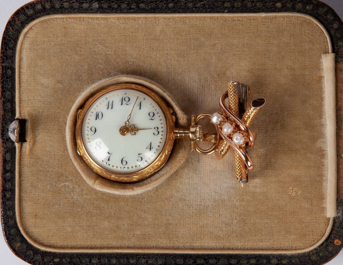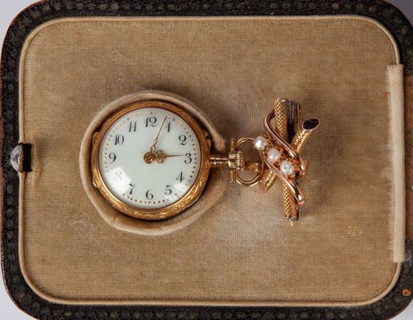 Orologio a monachina in oro, diamanti e smalto