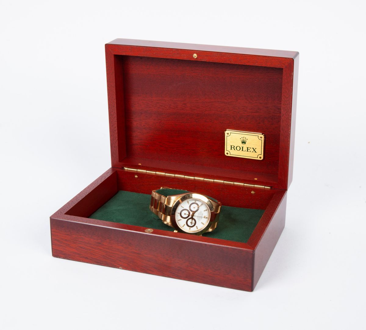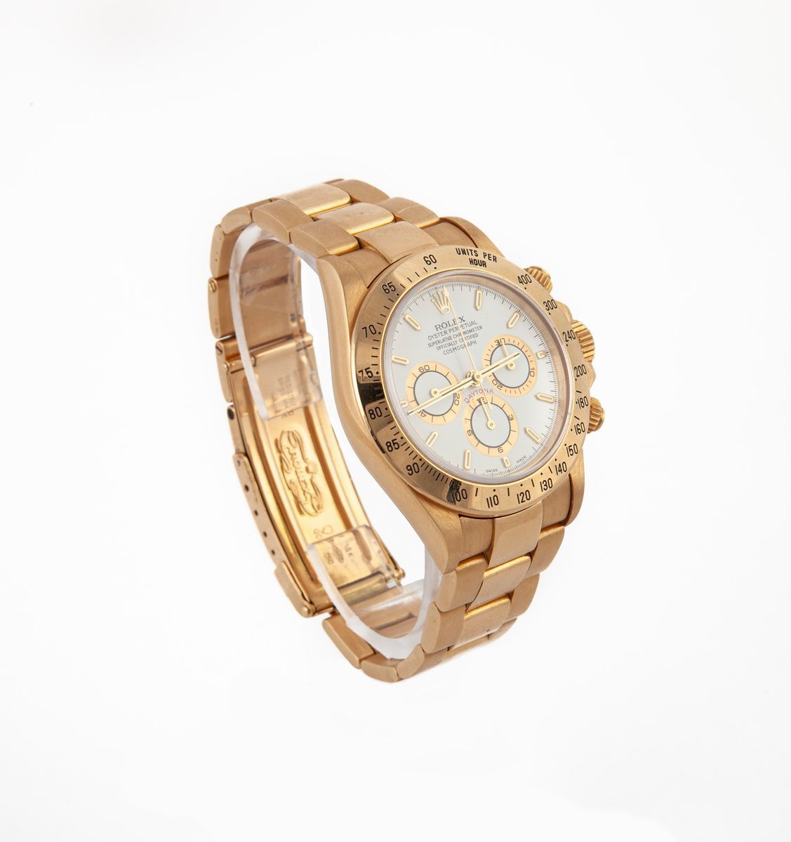 Oro giallo 750/000. Ref. 16582. Movimento a carica manuale con cronografo in oro giallo. Funzionante, entro scatola e garanzia originali.