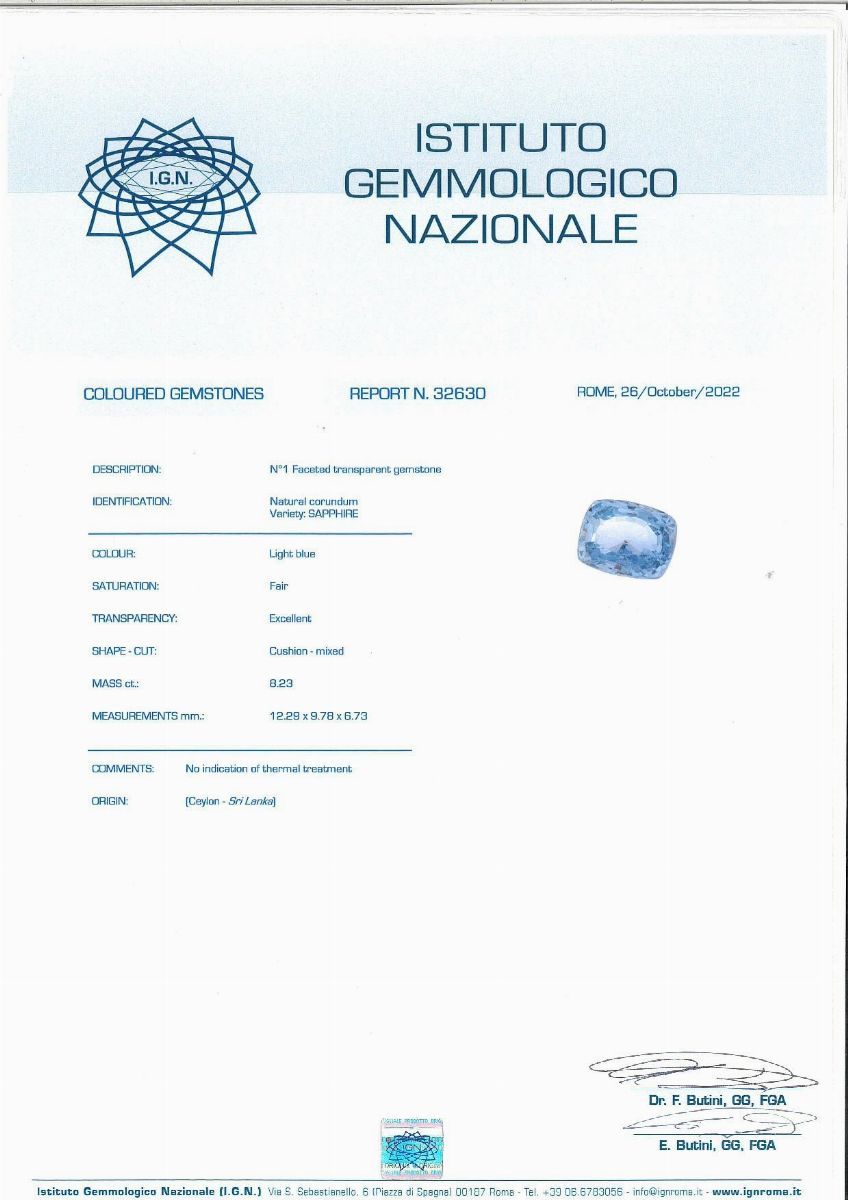 Ct. 8,23, taglio cushion. Nessuna indicazione di trattamento termico.