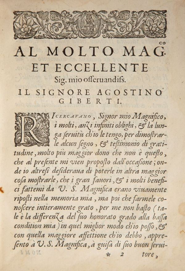 In 8° piccolo, prima edizione italiana di questo celebre dialogo nella traduzione dallo spagnolo di Celio Malespini. Legatura in piena pergamena rigida coeva, con titolo manoscritto al dorso. Tagli marmorizzati. Tracce di tarli alle ultime carte, lavoro di tarlo all'interno che non lede il testo.