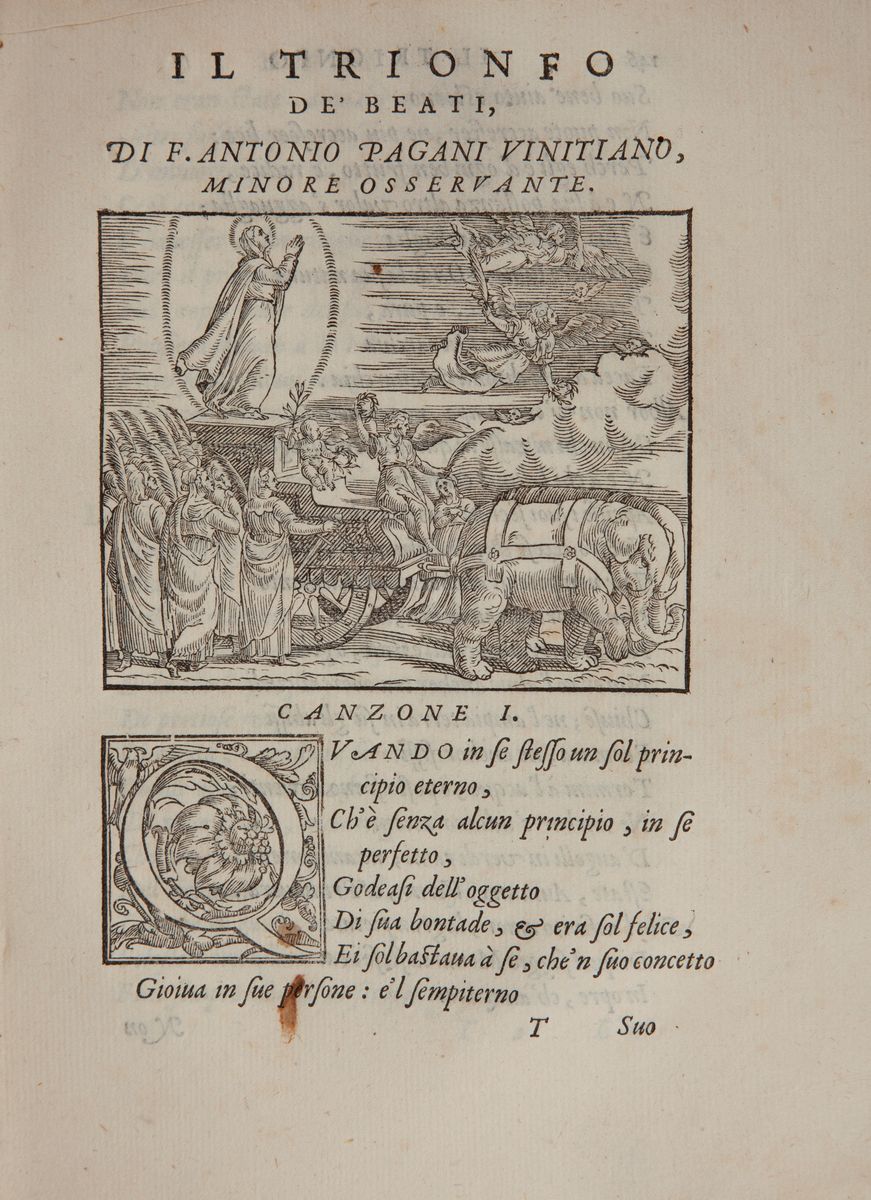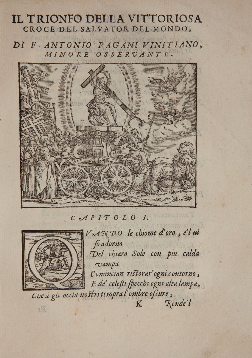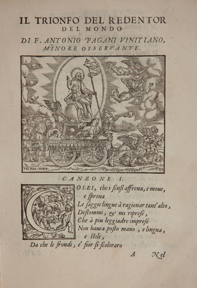 Antonio Pagani. Le rime spirituali Nelle quali si contengono quattro trionfi, che tutti i profondi miseri di Christo, et le degne lode de' Beati narrano, Appresso Bolognino Zaltieri Venezia 1570