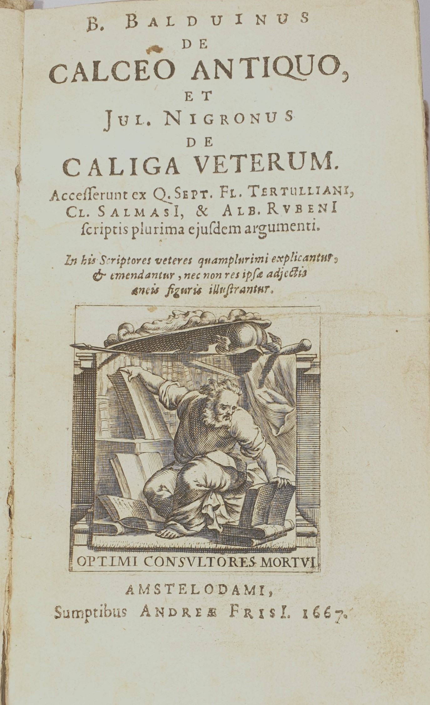 Benedictus Balduinus. De calceo antiquo - Julius Nigronus De caliga veterum, Andrea Frisi, Amsterdam 1667.
