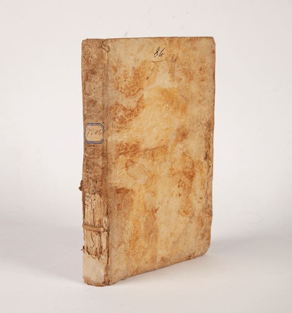 In 8°. Prima ed unica edizione dei "Discorsi" di una delle Accademie più attive e vivaci del '600 veneziano che si occupava di ogni genere letterario, dalla prosa, alla poesia, alla trattatistica, fondata da Giovan Francesco Loredan. Legatura in pergamena coeva floscia con difetti e mancanze