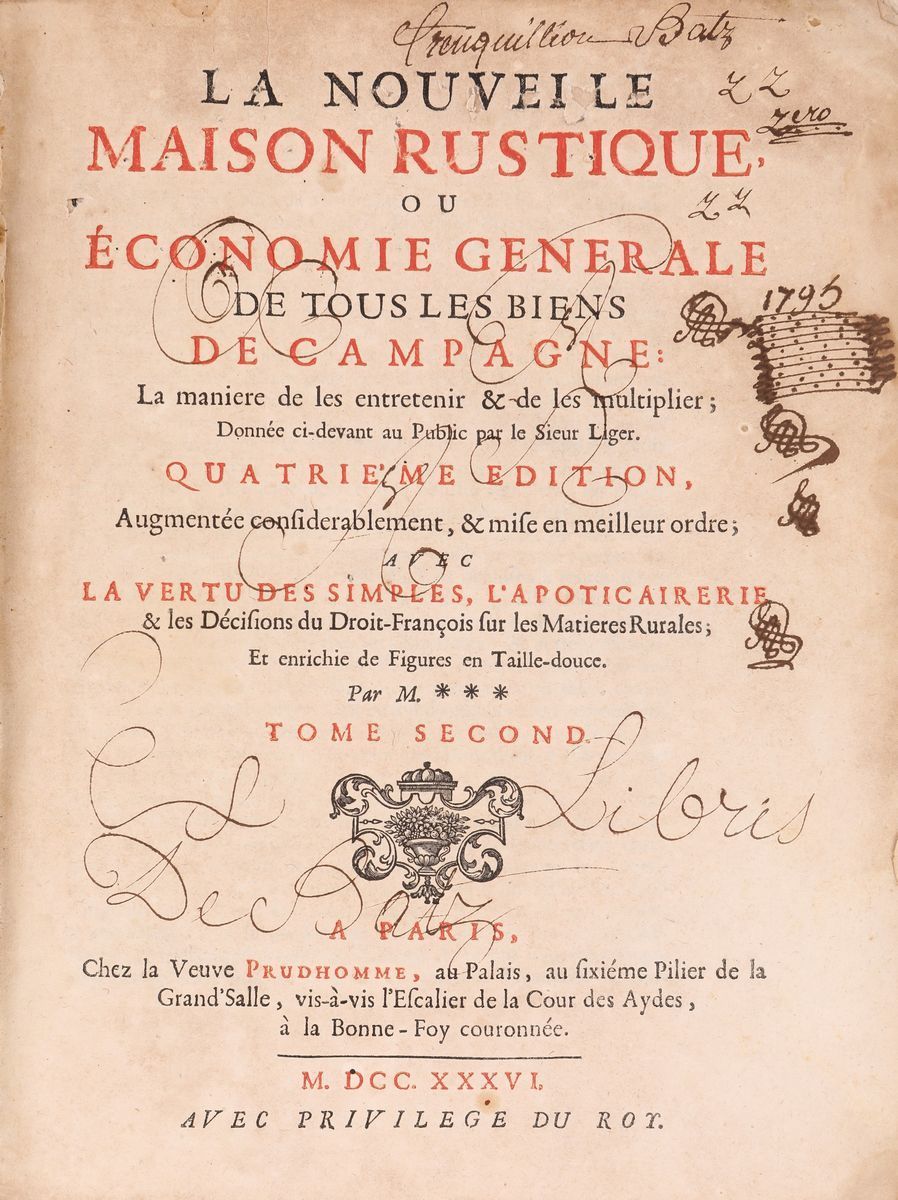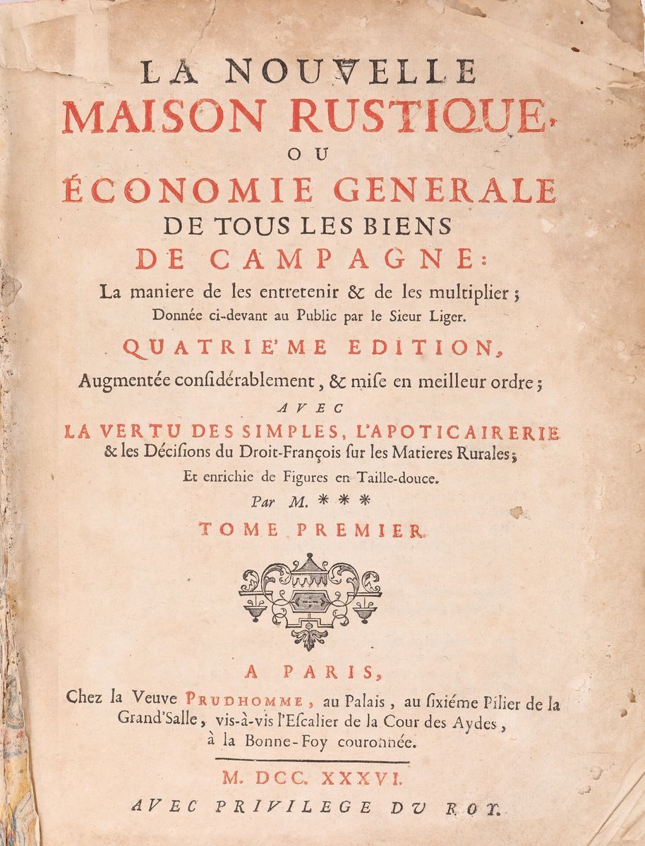 Louis Liger. La nouvelle maison rustique, ou economie generale de tous les biens de campagne, Chez Veuve Prudhomme, Parigi 1734