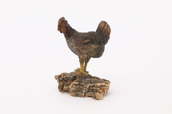 Gallinella e piccione in terracotta policroma