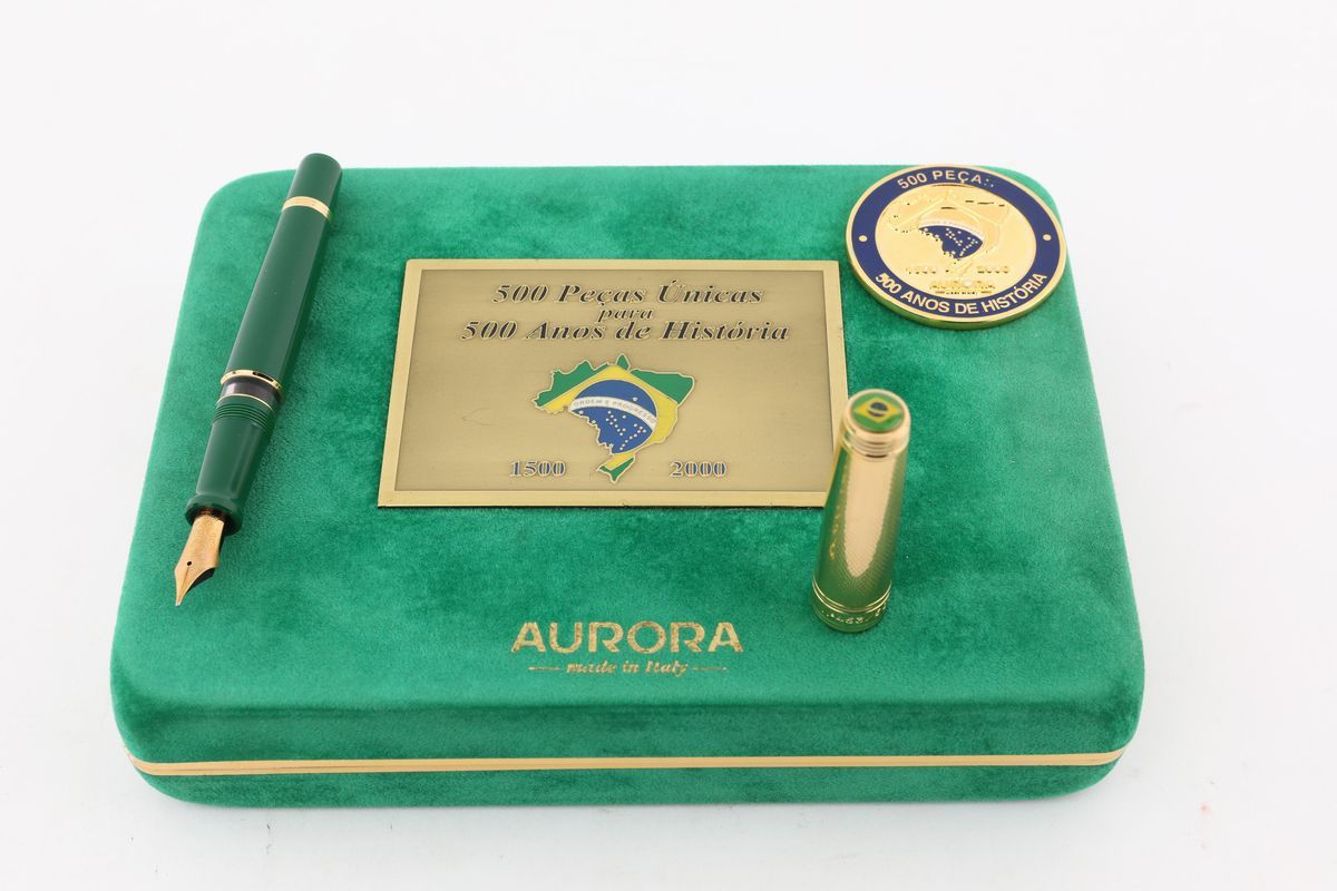 Aurora, 500 anni di storia del Brasile - penna stilografica in resina verde e metallo dorato