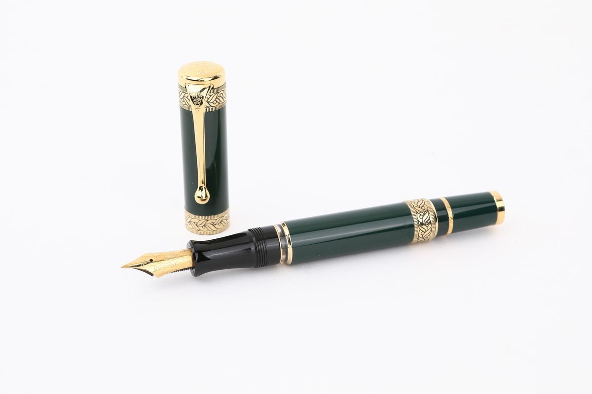 Aurora Dante Alighieri - penna stilografica in smalto verde e particolari dorati