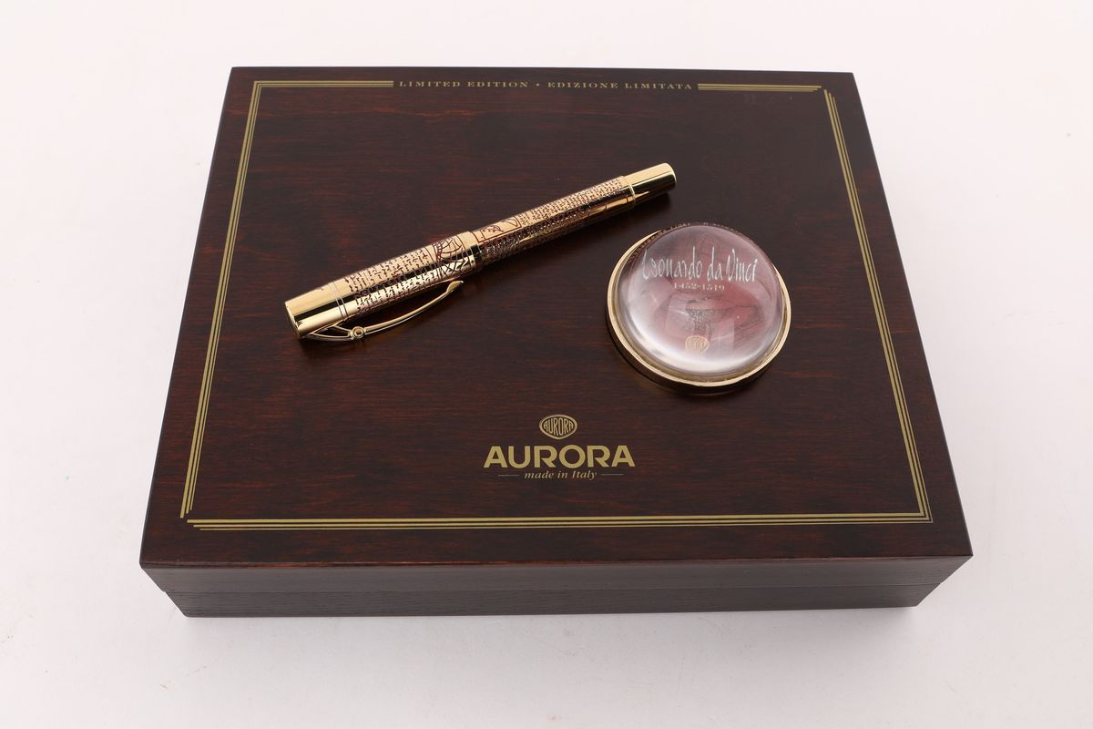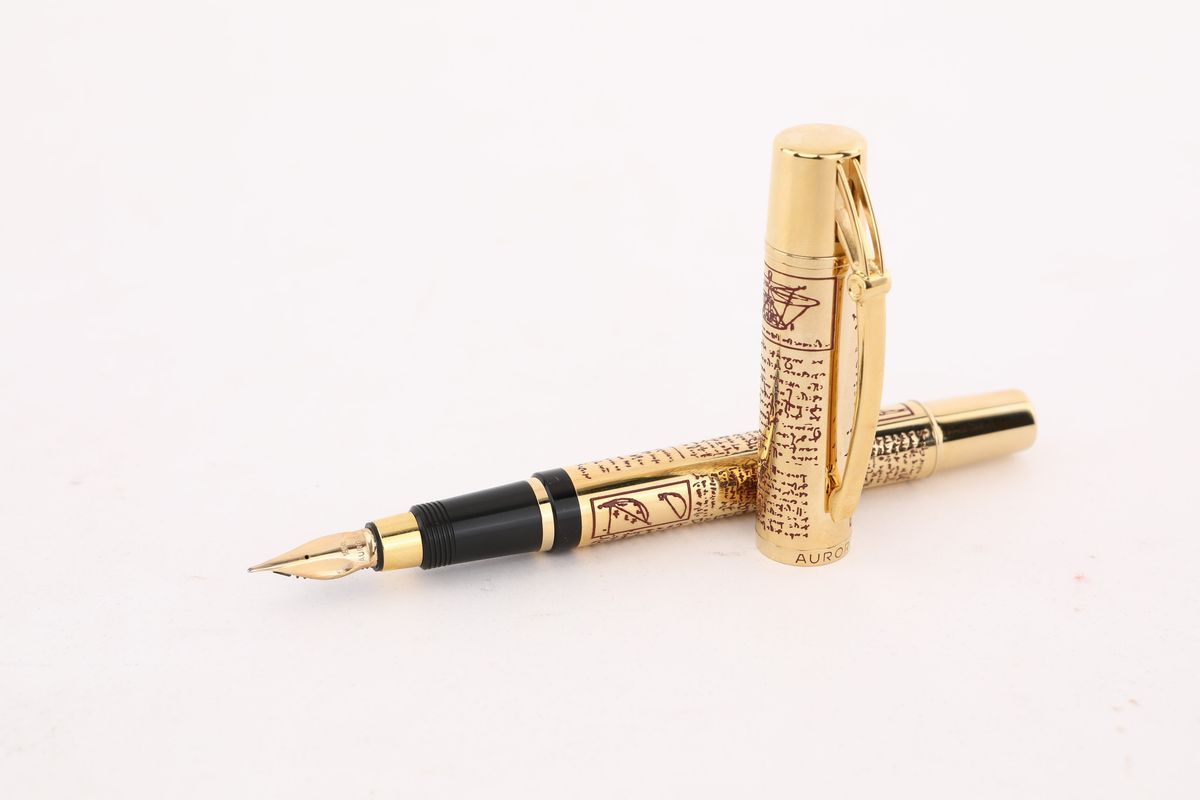 Aurora Leonardo da Vinci - penna stilografica in metallo dorato con incisioni in lacca
