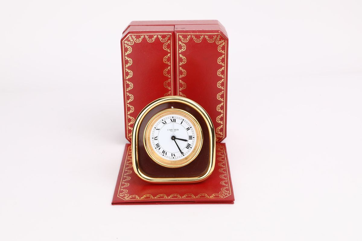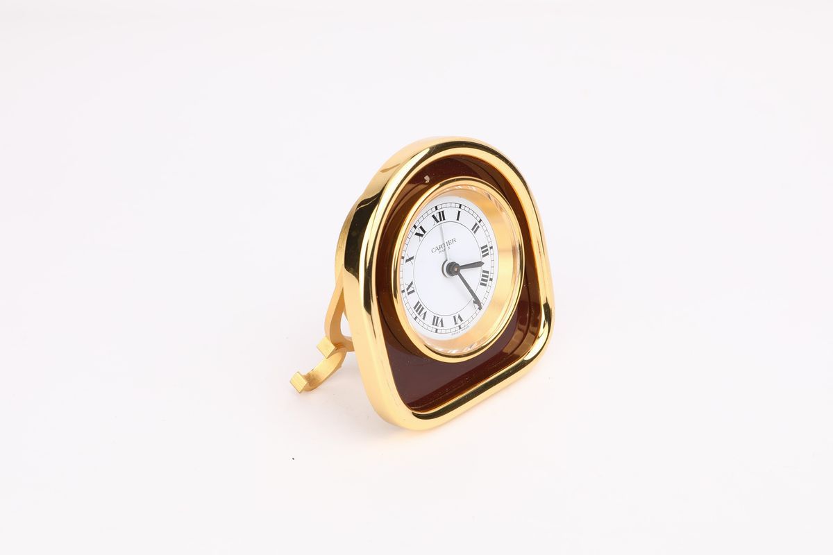 Le Must Cartier - Orologio da tavolo/viaggio con sveglia a carica manuale in metallo dorato e smalto