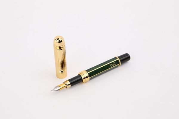 Lion, penna stilografica in metallo dorato e smalto