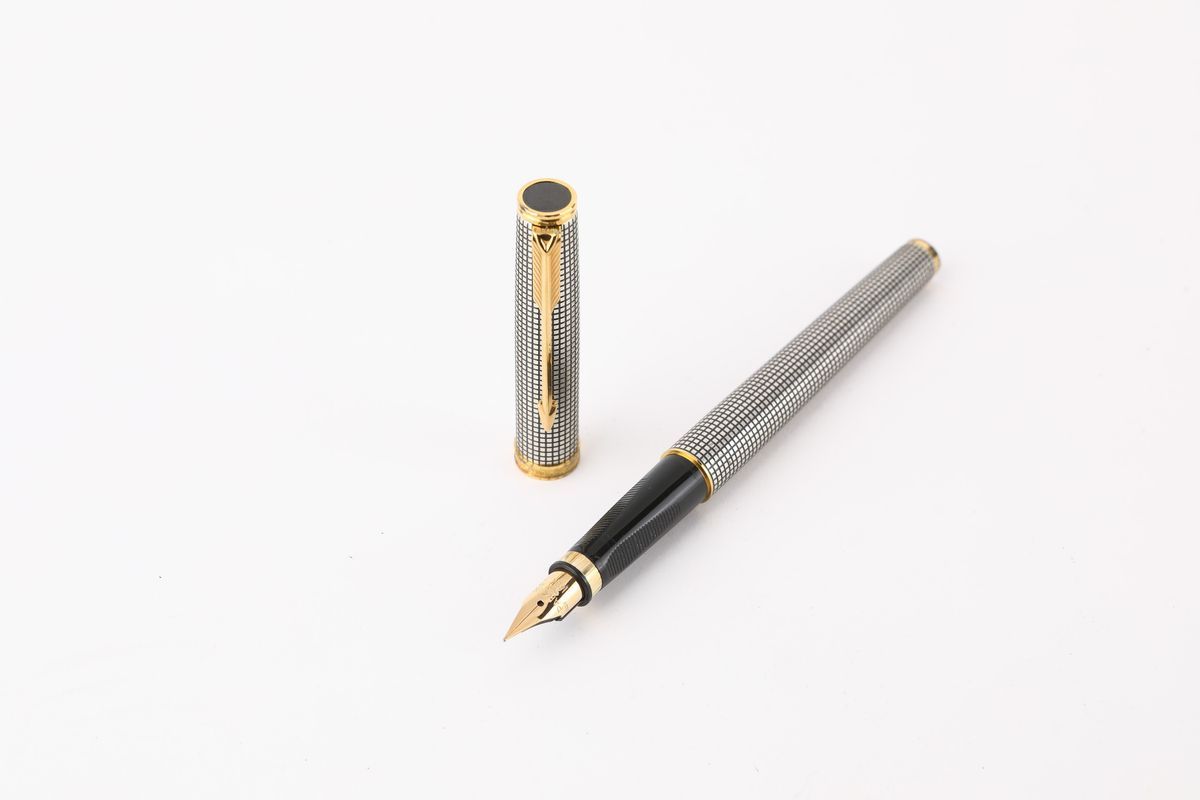 Parker - penna stilografica in argento 925 ciselé con particolari dorati