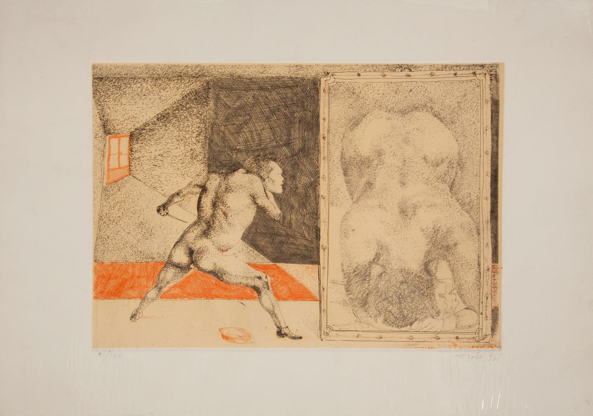 Esemplare XII/XXX delle 30 copie numerate in numeri romani fuori commercio, firmate e numerate dall'autore. Contenente le tre acqueforti originali a tre colori tirate a mano su carta speciale e la litografia a 5 colori firmate e numerate dall'autore, anch'esse in soli 30 esemplari numerati in numeri romani, ns. esemplari nn. XII/XXX. Presentazione di Dario Micacchi, impostazione grafica di Giuseppe Montanucci. Formato oblungo. Ottimo stato, entro cofanetto originale.