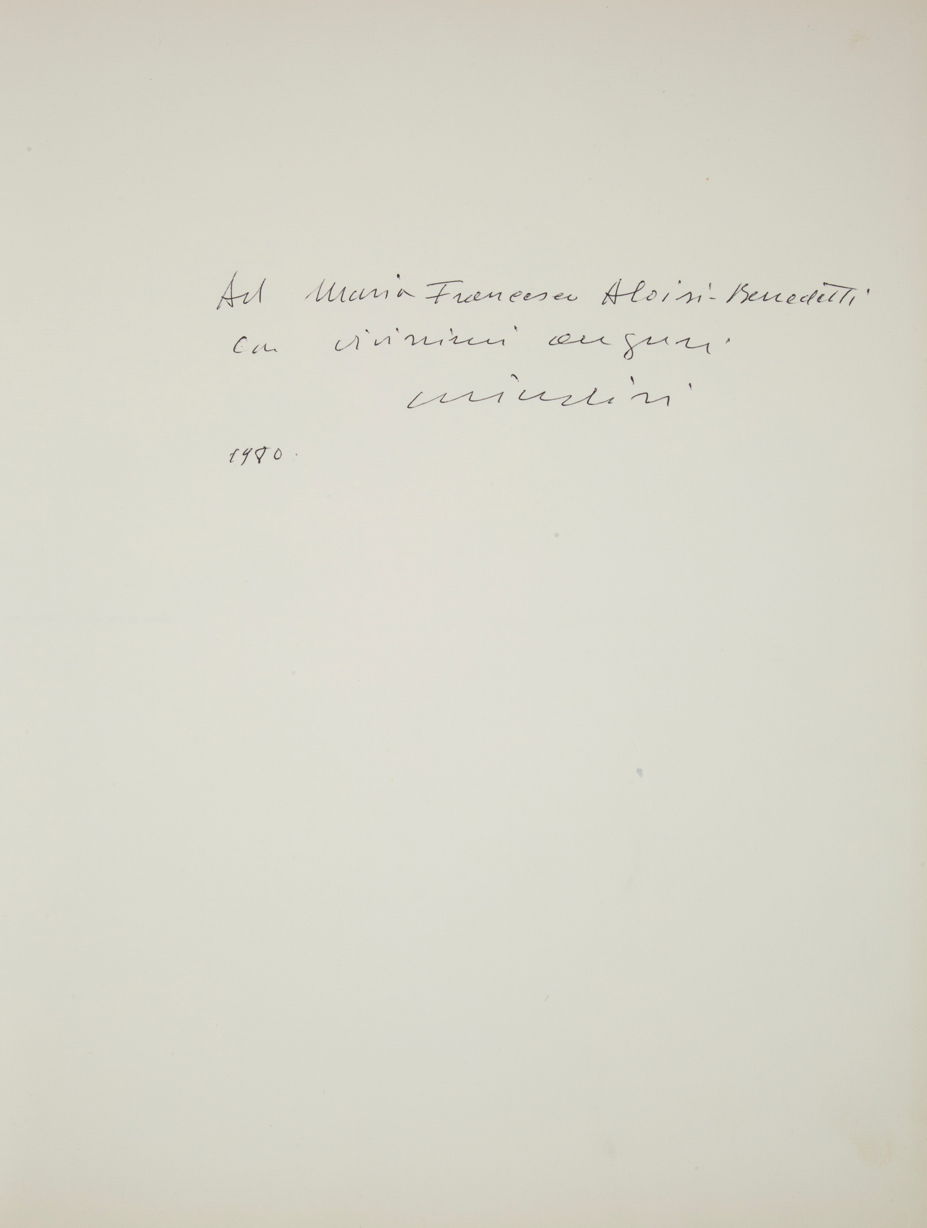 Con dedica autografa datata 1980. Edizione speciale in tiratura limitata di 500 esemplari, ns. n. 47. Grande volume comprendente numerose tavole a colori, le cui lastre sono state cancellate a tiratura ultimata. Legatura in piena pelle con fregi e titolo in oro al dorso e al piatto. Mancante di cofanetto.