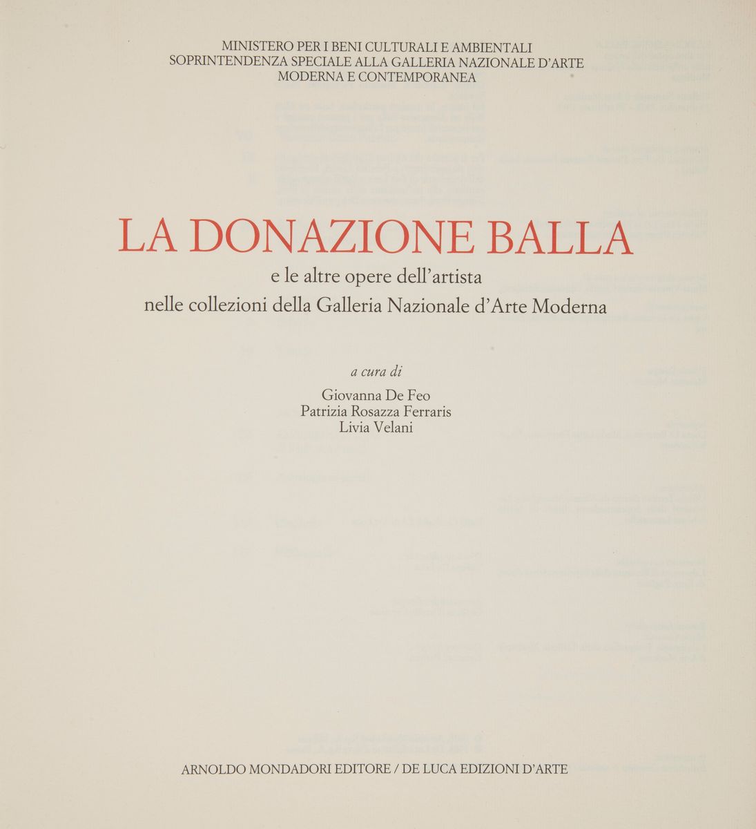 Giovanna De Feo. La donazione Balla e le altre opere dell'artista nelle collezioni della Galleria Nazionale d'Arte Moderna, De Luca, Roma 1988