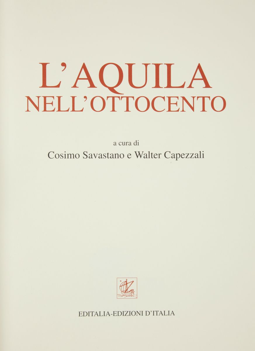 L'Aquila nell'Ottocento, a cura di Cosimo Savastano e Walter Capezzali, Editalia, Roma 1996