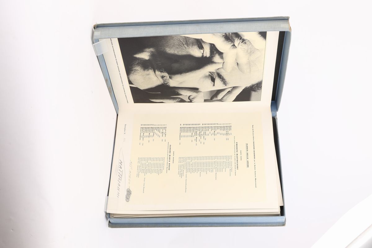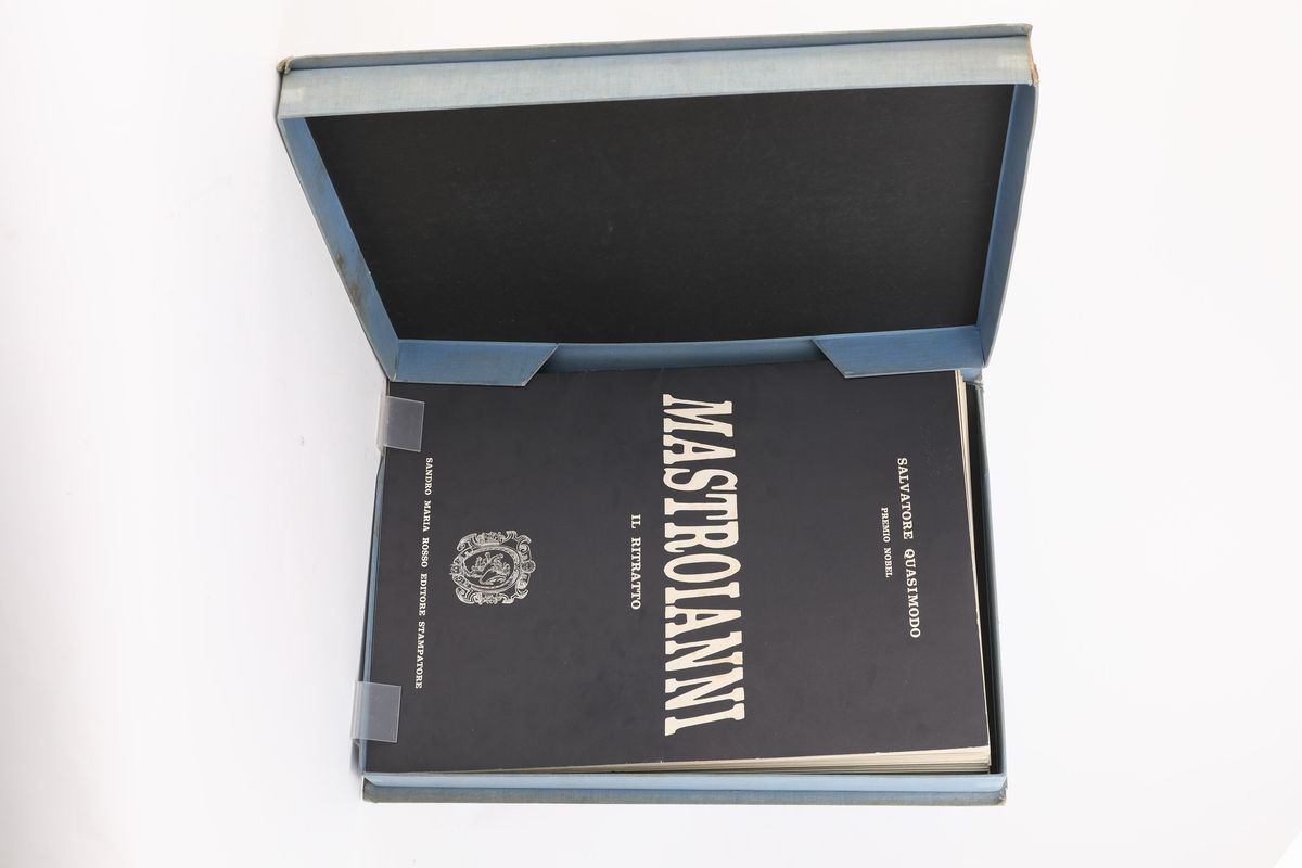 Tiratura limitata in 1000 esemplari numerati, ns. n.975 con dedica autografa. Prima parte: "Il Ritratto nella scultura di Mastroianni". Seconda parte: "Una interpretazione grafica dello stampatore S. M. Rosso". 33 tavole fuori testo in nero e a colori su carta Miliani di Fabriano ad illustrare il ritratto nella scultura di Mastroianni; 18 tavole con interpretazione grafica dello stampatore Sandro Maria Rosso. Entro cartella in piena tela editoriale con titoli in oro al piatto.