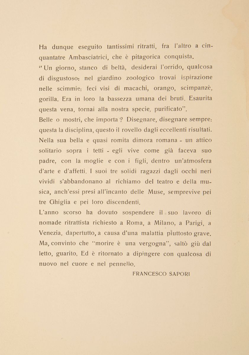 Opuscolo di Francesco Sapori, Paulo Ghiglia - Tipografia artigiana, Roma.
