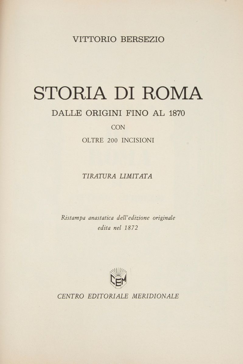 Vittorio Bersezio. Storia di Roma dalle origini fino 1870, Centro editoriale meridionale, Napoli 1978