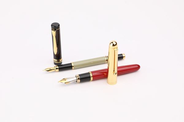 Fendi, Bruno Piattelli - Due penne stilografiche in metallo smaltato e in metallo dorato e resina