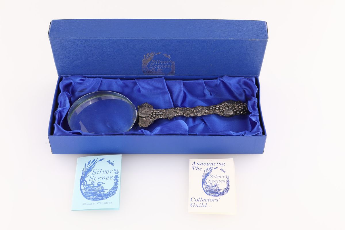 Lente d'ingrandimento da tavolo in silver plated. Maureen Story Jones, Galles.